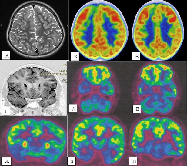 Результаты. По данным магнитно-резонансной томографии у 223 (93,3%) пациентов выявлены те или иные структурные изменения головного мозга. Рубцово-глиозно-кистозные и атрофические изменения обнаружены у 47 (21,1%), мальформации коркового развития - у 33 (14,8%), доброкачественные опухоли головного мозга - у 43 (19,3%), сосудистые мальформации - у 47 (21,1%), арахоидальные кисты - у 21 (9,4%), гиппокампальный склероз – у 12 (5,4%), факоматозы – у 11 (4,9%), энцефалит Расмуссена – у 5 (2,2%) и гамартомы гипоталамуса – у 4 (1,8%). На основании результатов позитронно-эмиссионной томографии выявлены участки гипометаболизма серого вещества головного мозга, соответствующие зонам метаболического дефицита вокруг эпилептического очага. Хорошие результаты хирургического лечения в отдаленном периоде - класс Engel I достигнут у 67,6%. Самые лучшие результаты (Engel I) отмечались после лезионэктомии (81,9%), темпоральных резекций (78,4%) и гемисферэктомии (72,7%).